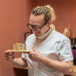 - Mezcla la leche, la nata, las yemas de huevo y el queso Comté a 60°C. Vierte en un sifón.