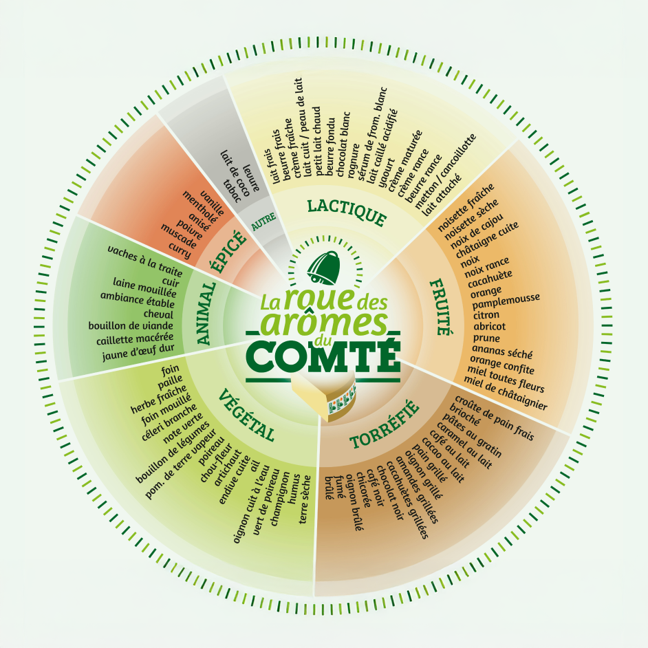 Pas facile de décrire toutes les saveurs et les sensations que l’on peut ressentir pendant la dégustation d’un Comté. Chaque meule possède sa propre histoire. À vous de la parcourir ! Voici quelques clés qui définissent le Comté que vous êtes sur le point de déguster :